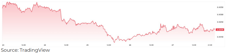 The rand strengthened from R0.1034 on Monday’s open to R0.1020 on Friday’s close [-1.35%].