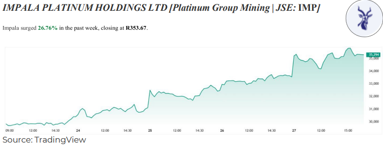The move appeared to be driven mainly by a continued re-rating of South African platinum equities as platinum group metal prices stayed elevated on tight supply and stronger investor demand, which has increasingly shifted market focus back to near-term cash generation and potential shareholder returns. In Implats’ case, that theme had already been reinforced by its trading update pointing to a sharp interim profit uplift, largely attributed to higher metal prices, keeping attention on the earnings momentum heading into results. Strong sector signals during the week, including upbeat earnings and dividend announcements from peers, likely added to the supportive backdrop for Implats and the broader platinum complex.