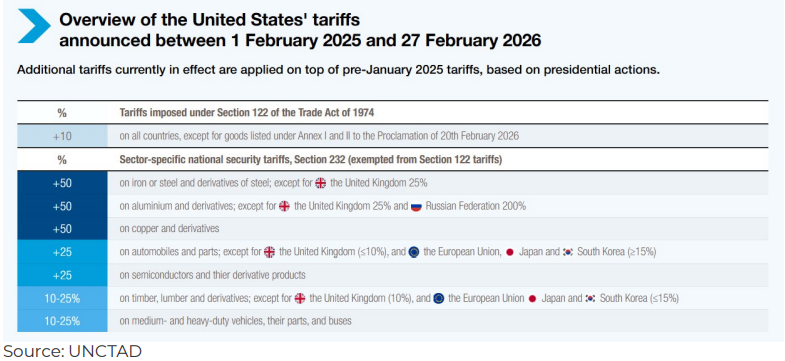 United States trade policy shifted again after a Supreme Court decision curtailed the use of emergency powers for tariffs, prompting the administration to rely on Section 122 of the Trade Act of 1974 to impose a temporary across-the-board import surcharge. A 10% duty began being collected during the week, but officials indicated an intention to lift the rate to 15%, the maximum permitted under Section 122, with the measure set to run for 150 days unless Congress authorises an extension. The order framed the step as a response to a large trade and current-account gap, citing an annual goods deficit of about $1.2 trillion and a current-account deficit near 4% of gross domestic product. The shift has unsettled recently negotiated trade understandings, with major partners seeking confirmation that existing commitments will still be honoured and signalling possible retaliation if the higher rate is applied broadly. Legal debate has also intensified over whether current United States external accounts meet the statute’s balance-of-payments threshold, and industry groups have begun assessing refund claims, with the surcharge estimated to raise roughly $40 billion for the Treasury over the period. For South Africa, a higher blanket United States tariff would raise landed costs for exporters and may further cool global trade and investment demand.